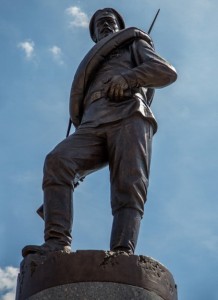 Centralną postacią pomnika jest żołnierz rosyjski. Obok żołnierza stoi mniejsza rzeźba wyobrażająca walki kawalerii. Płaskorzeźba na pomniku przedstawia siostrę miłosierdzia, która pomaga rannym. Monument ma prawie 150 metrów wysokości. Wykonał go Andriej Nikołajewicz Kowalczuk. Jego projekt wybrano w drodze konkursu. Trwał on od 2 kwietnia do 16 września 2013 roku. Na konkurs zgłoszono 32 propozycje wizji pomnika.