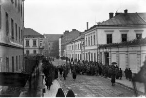 Państwowa Fabryka Cygar i Wyrobów Tytoniowych w Krakowie przy ulicy Dolnych Młynów - pracownicy opuszczają fabrykę po pracy 1926 |