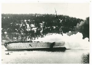 Tonący Blücher w Oslofjord 9 kwietnia 1940 r, |