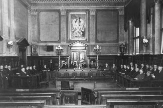 Sala rozpraw w sądzie okresu II RP |