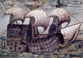 Hiszpański galeon La Santa Trinidad, rysunek Hieronymusa Kölera, ok. 1560 |