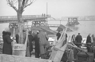 Zerwany przez powódź most drewniany wysokowodny na Wiśle, Warszawa 1947 rok |