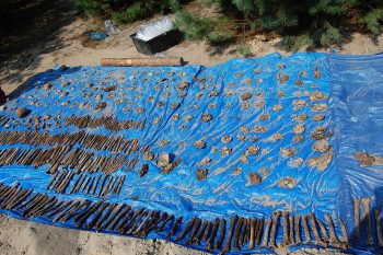 Kości wydobyte podczas ekshumacji na Trupim Polu (fot. Leon Popek, CC-BY-SA 3.0) |