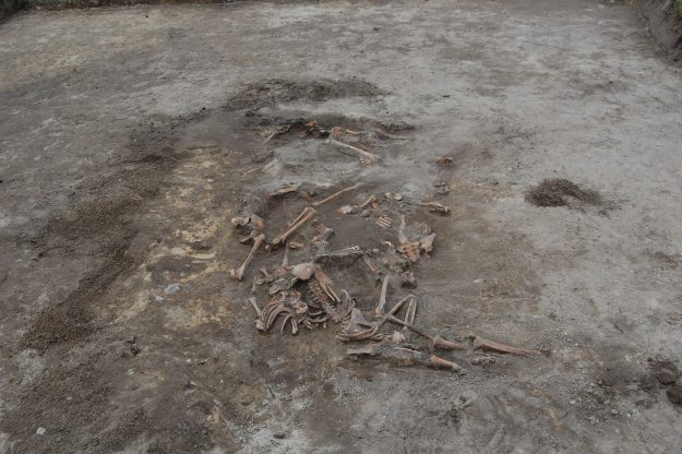Wola Ostrowiecka, odkryte szczątki ofiar na terenie dawnej szkoły, 2011 (fot. Leon Popek, CC-BY-SA 3.0)