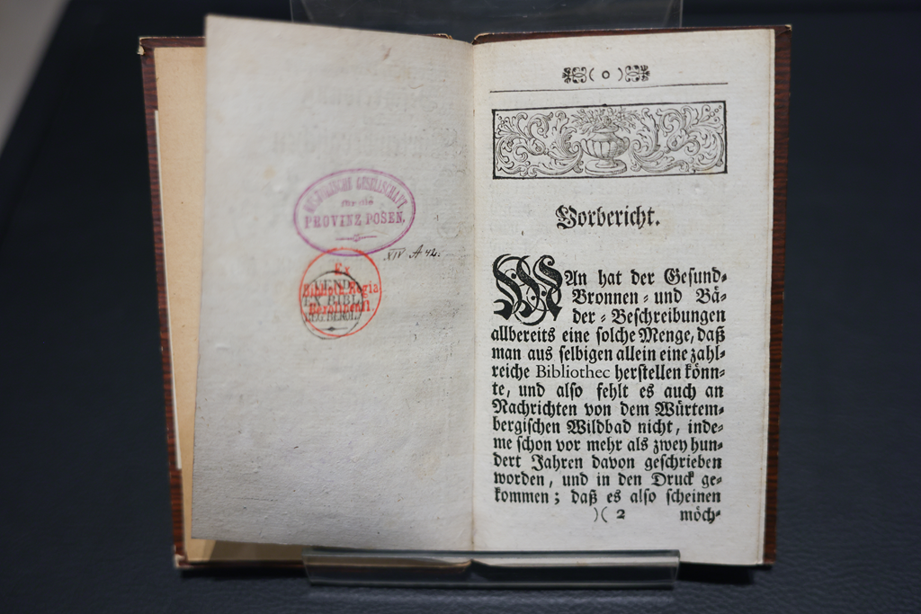 Do Biblioteki Uniwersyteckiej w Poznaniu powrócił także starodruk Johanna Albrechta Gesnera — Historisch-physicalische Beschreibung des würtembergischen Wild-Bades (ok. 1745). Publikacja została odnaleziona na aukcji niemieckiej i rozpoznana dzięki bibliotecznym sygnaturom oraz proweniencji. Po negocjacjach z antykwariatem obiekt wrócił do właściwego księgozbioru.