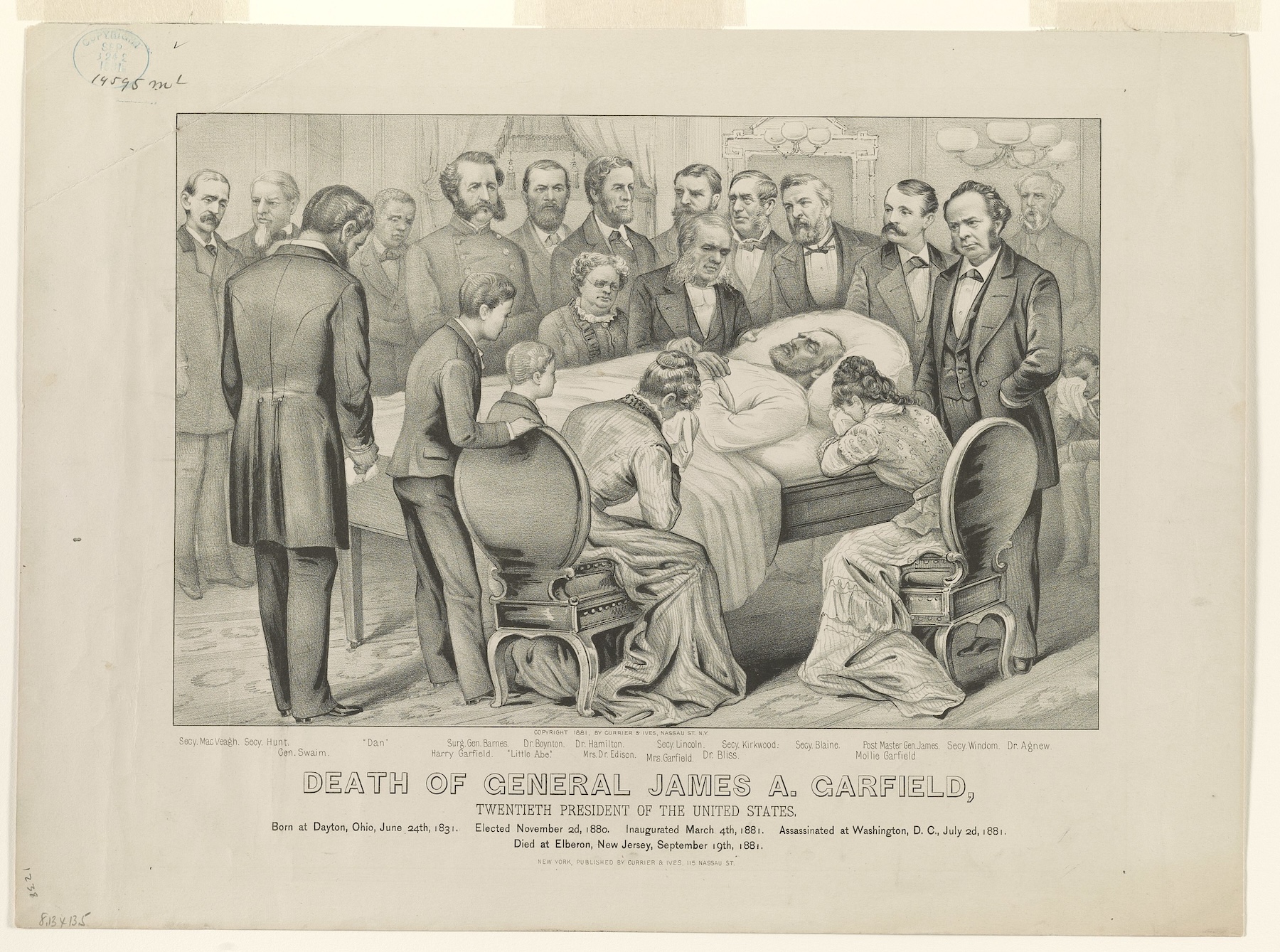 Niestety poprawa była krótkotrwała. Garfield krótko przed śmiercią znów dostał wysokiej gorączki i 19 września 1881 r. - w obecności żony Lucretii i córki Harryett - zmarł o godzinie 22:35. Miał wówczas 49 lat. Garfield pełnił urząd prezydenta zaledwie przez około 200 dni – większość tego czasu spędził w łóżku, walcząc o życie po zamachu. Oficjalnym podanym powodem zgonu była zakażona rana postrzałowa powodująca posocznicę i wewnętrzny krwotok.