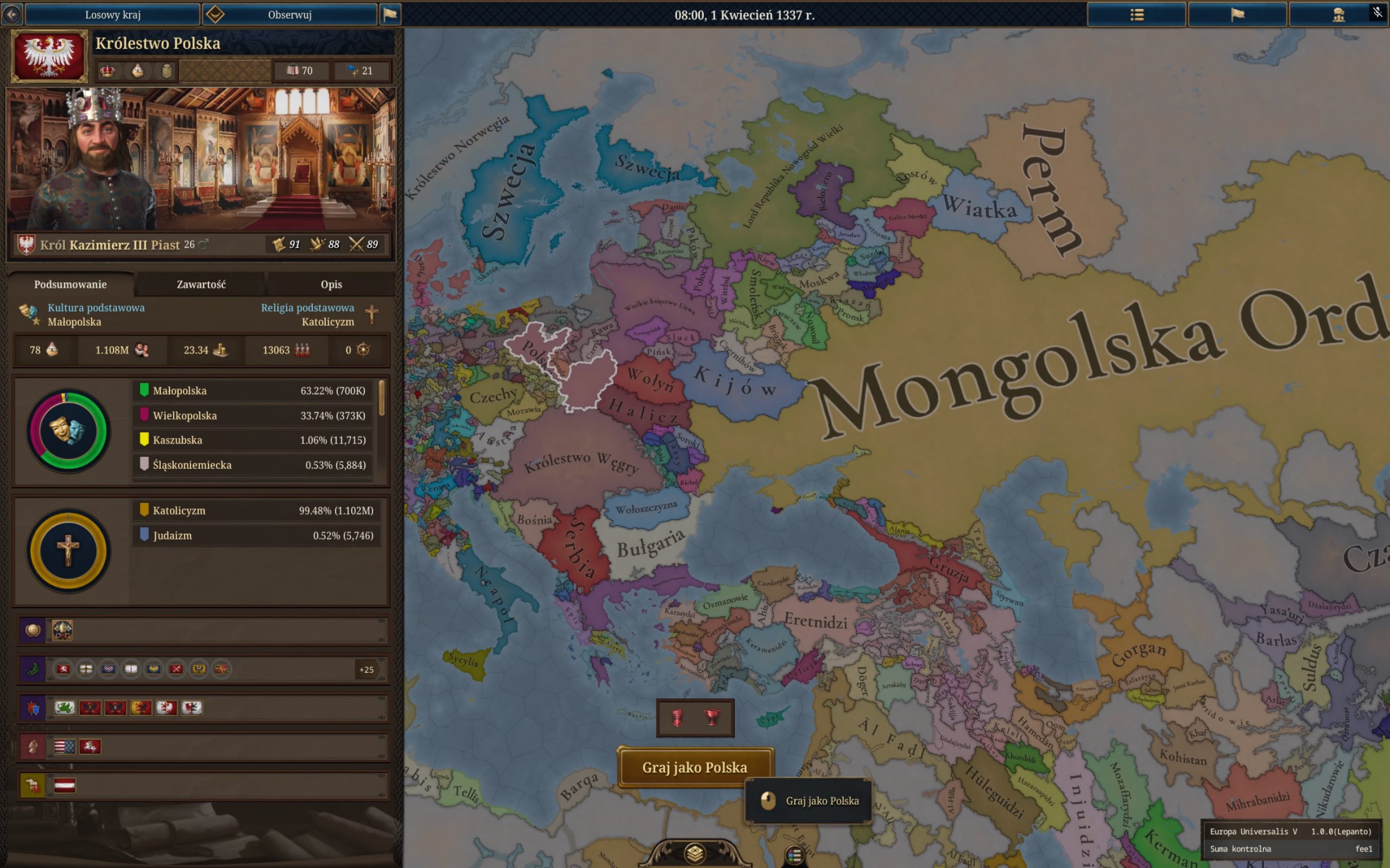 Dla polskich graczy to premiera wyjątkowa. Seria od lat cieszy się ogromną popularnością nad Wisłą, a społeczność moderska z Polski należy do najaktywniejszych na świecie. Nowy punkt startowy - rok 1337 - obejmuje czasy Kazimierza Wielkiego i unifikacji Królestwa Polskiego, co otwiera zupełnie nowe możliwości kampanii i alternatywnych scenariuszy Europy Środkowej.