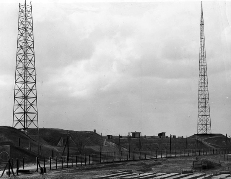 Maszty radiowe Polskiego Radia na terenie fortu Mokotów, lata 30. XX wieku